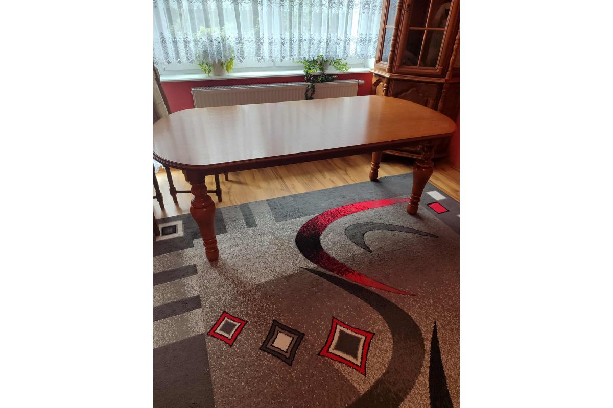Witam mam na sprzedaż ,duży stół rozkładany wymiary przed rozłożeniem 200\94 wysokość 76 do rozłożenia dodatkowo 2 płyty o wymiarach 50 cm cena 400 ,komoda w połowie szklana narożna cena 200 zł , komoda wymiary 102\50 wysokość 78 cena 100 zł, i krzesła cena 20zł. odbiór kiełpino kartuskie