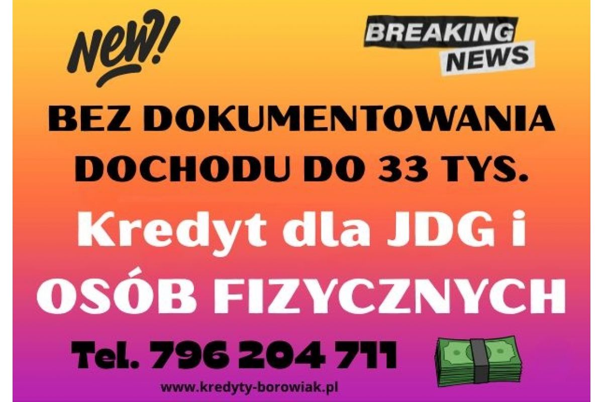 KREDYT DLA JDG I OSÓB FIZYCZNYCH BEZ DOKUMENTOWANIA DOCHODU!
